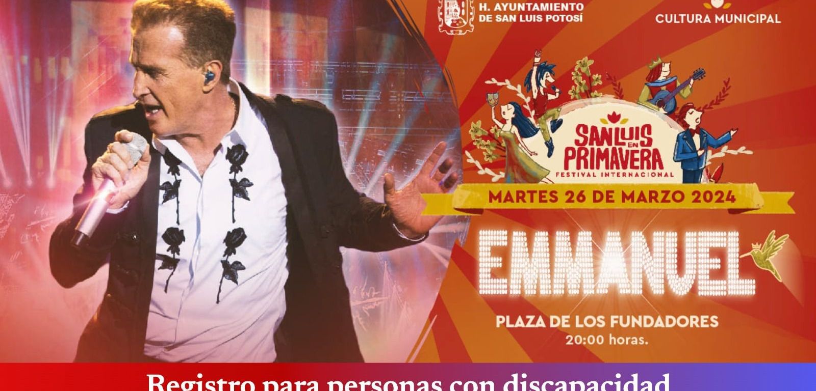 El Festival Internacional San Luis en Primavera abrió el registro especial para personas con discapacidad que deseen acudir a los diversos eventos organizados por el Ayuntamiento de San Luis Potosí, cuya programación inicia el próximo sábado y concluye el 31 de marzo.
