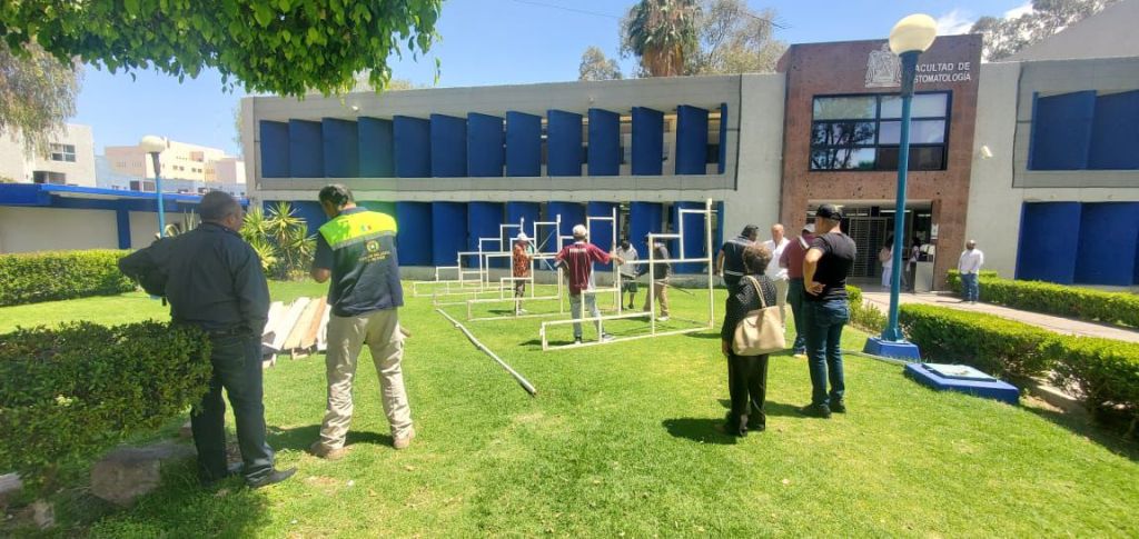 El Poder Ejecutivo del Estado, a través de la Coordinación Estatal de Protección Civil (CEPC), acudió a la Facultad de Estomatología de la Universidad Autónoma de San Luis Potosí (UASLP), para colaborar en lo que así lo soliciten las autoridades universitarias, por la caída de una estructura metálica instalada provisionalmente para que jóvenes estudiantes se tomaran una fotografía, donde nueve personas resultaron lesionadas.