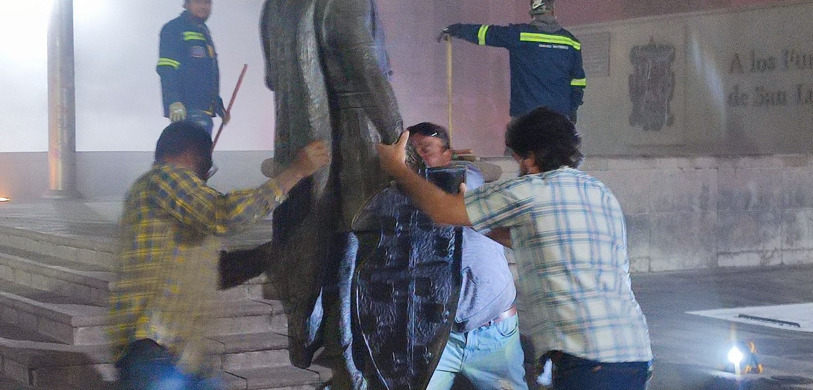 Con el conocimiento previo de Comercio Municipal, Unidad de Gestión del Centro Histórico y el Instituto Nacional de Antropología e Historia (INAH SLP), Mario Cuevas y su equipo, y un representante de Cultura Municipal, hicieron el retiro de la pieza esta madrugada. En el espacio de la escultura ahora puede apreciarse una mampara instalada por Cultura Municipal que explica el porqué del retiro y la modificación que se hará en la escultura.