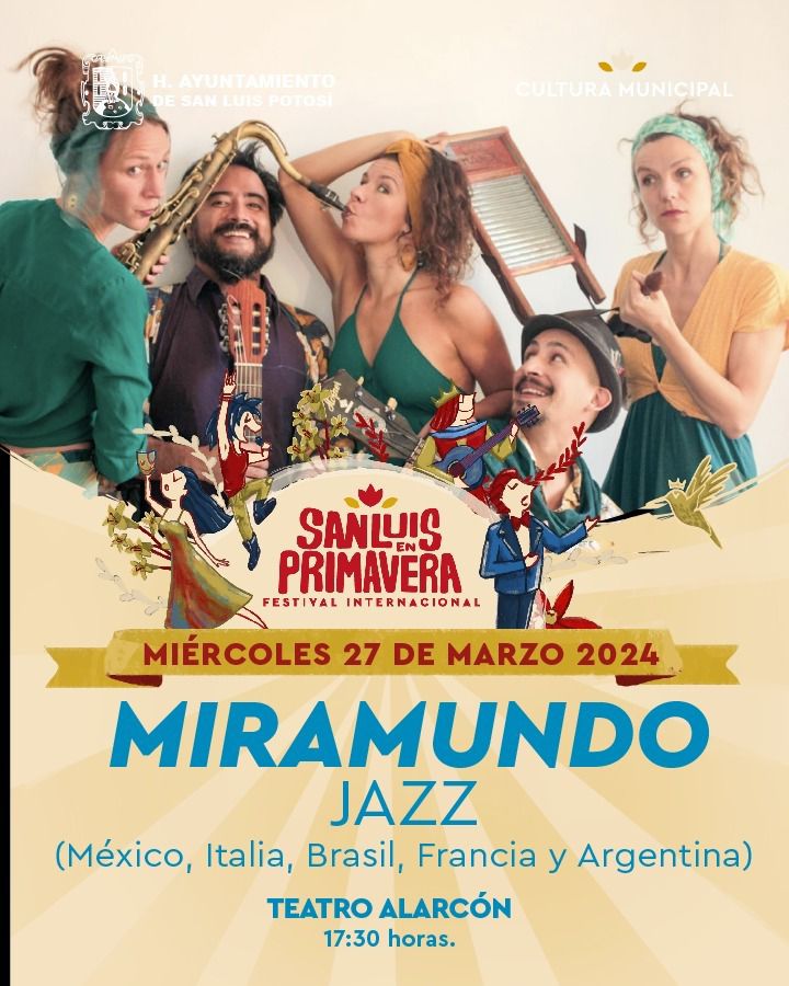 Miércoles 27 de marzo. 17:30 horas. Miramundo Jazz (México, Italia, Brasil, Francia y Argentina).