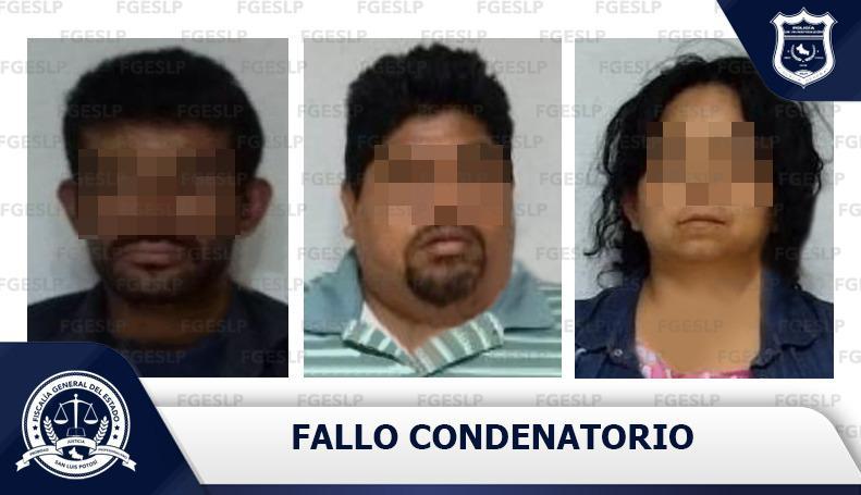 Litigadores de la Unidad de Homicidios de la Fiscalía General del Estado de San Luis Potosí (FGESLP) lograron que un Juez dictará fallo condenatorio contra Verónica “N”, José “N” y Juan “N”, por el delito de homicidio calificado.