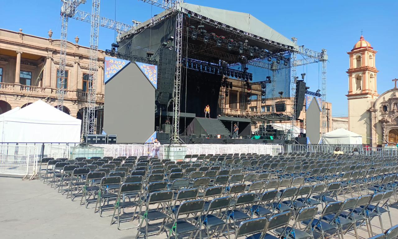 El escenario de Plaza de Aranzazú está casi listo; arranca actividad mañana domingo 24 de marzo.