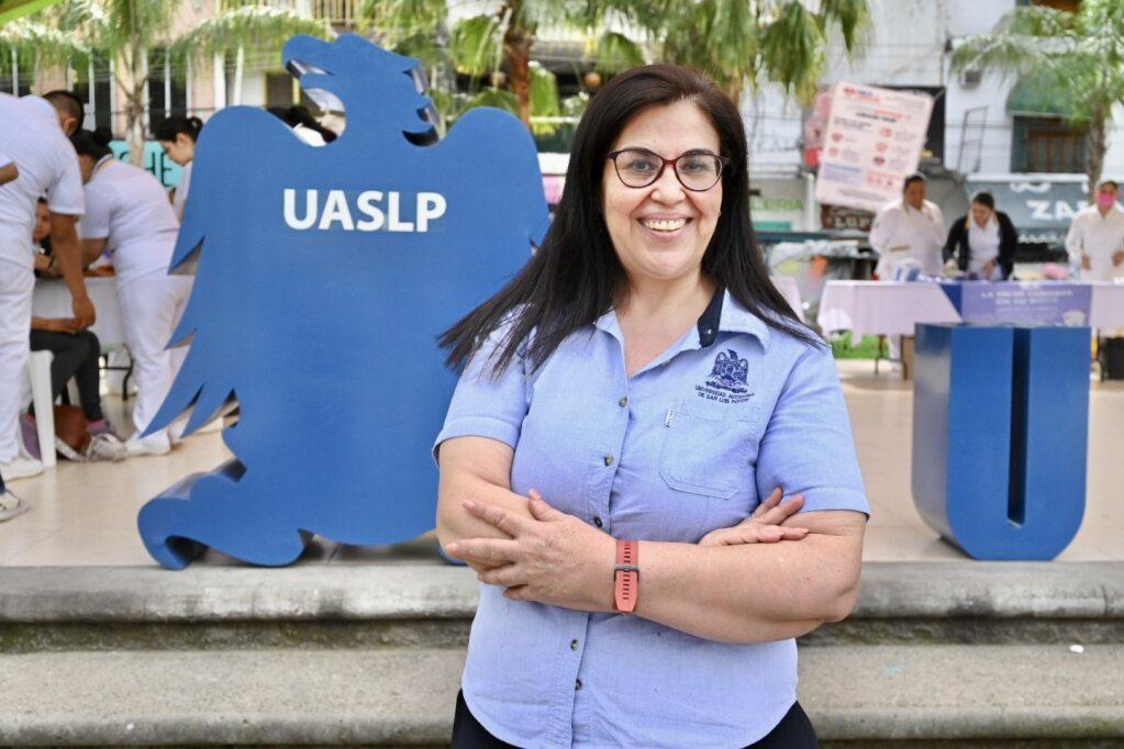 La profesora tiene casi 40 años de formar parte de la UASLP desde su etapa como estudiante de la preparatoria No 1. “Manuel Moreno”, posteriormente como estudiante de la Licenciatura en Electrónica Física en la Facultad de Ciencias y Maestría en Metalurgia e ingeniería de Materiales en la Facultad de ingeniería, de donde también fue becaria. En el año 2000 ingresó como técnico académico del Laboratorio de Física del Departamento Físico Matemáticas, para después incorporarse como profesora por asignatura hasta su cambio de adscripción como profesora investigadora en la Coordinación Académica Región Huasteca Sur.