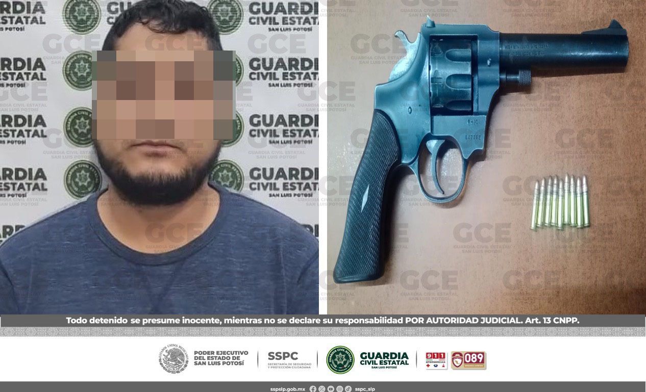 Gracias a la atención oportuna de un llamado de auxilio atendido en la Línea de Emergencias 911, oficiales de Guardia Civil Estatal (GCE) detuvieron a un hombre, por el probable delito de violencia familiar, asegurándole un arma de fuego.
