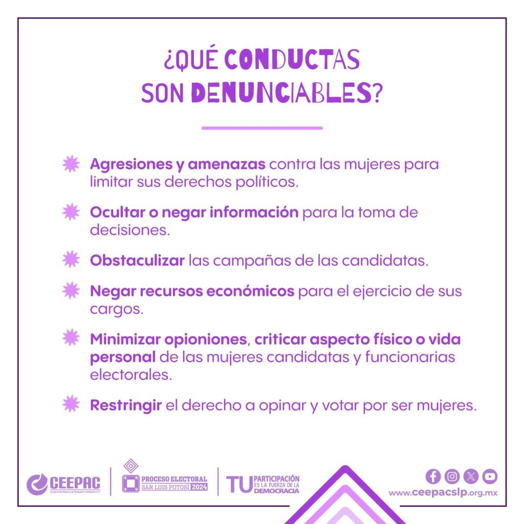El Consejo Estatal Electoral y de Participación Ciudadana (CEEPAC) está comprometido con la identificación, sanción y erradicación de la VPMRG durante este Proceso Electoral 2024 donde se renovarán 58 ayuntamientos y 27 diputaciones, y así garantizar el principio constitucional del acceso a una vida libre de violencia para las mujeres.