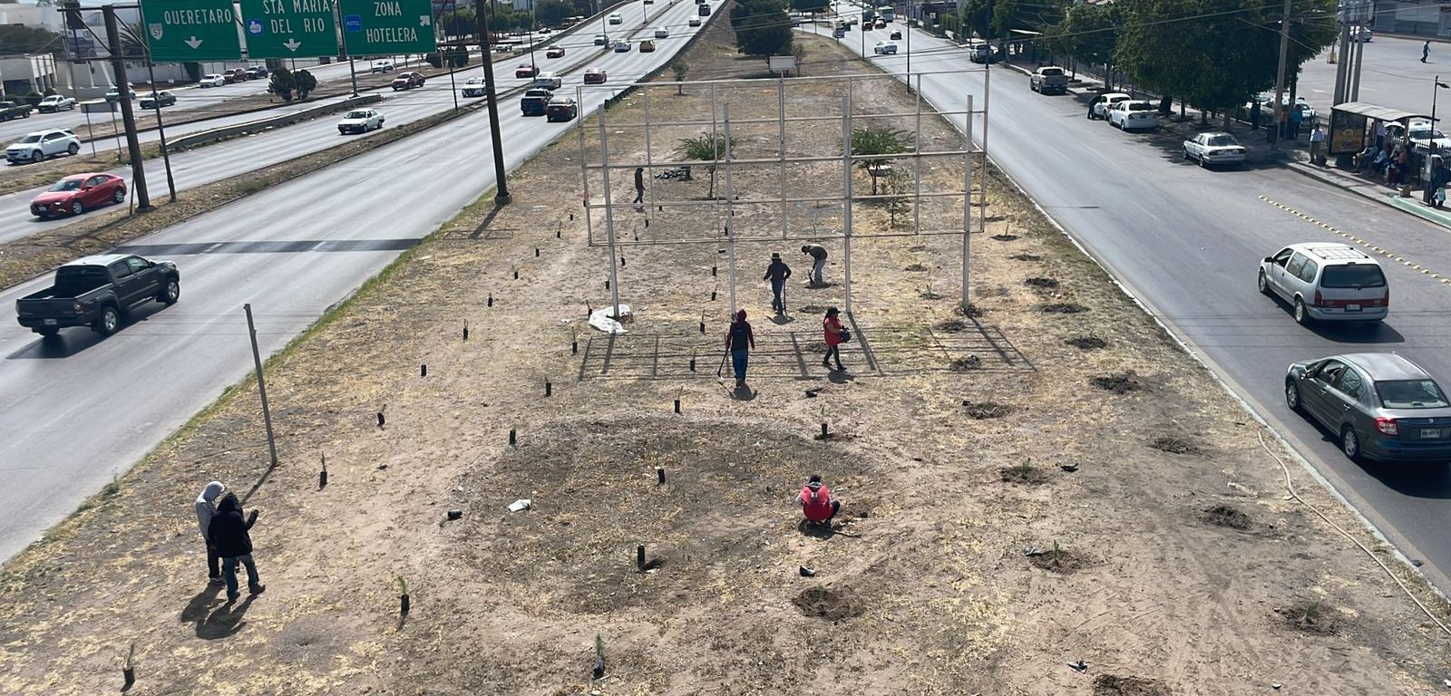 Nueva vegetación lucirá todo el tramo de la Glorieta Juárez hasta la avenida Topacio con especies pino greggii, mezquite y yuca.