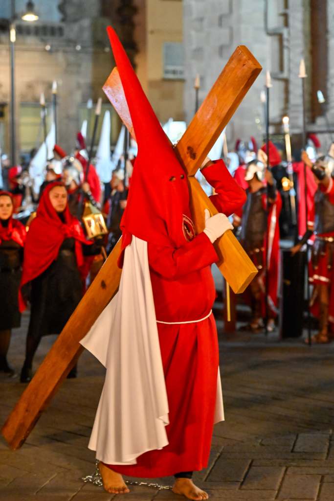Entre el silencio y los tambores cada cofradía se identificó por los colores alusivos a sus templos, los costaleros cargaron las pesadas imágenes, damas, nazarenos, encapuchados y cofrades también se mostraron penitentes.