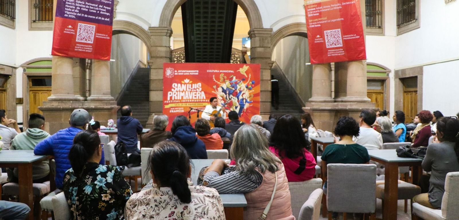 El artista potosino Juan Sebastián Castro deleitó al público presente en el Centro Cultural Palacio Municipal con su guitarra Clásica. El talentoso joven mostró su avance en la guitarra, producto del estudio y la ejecución.