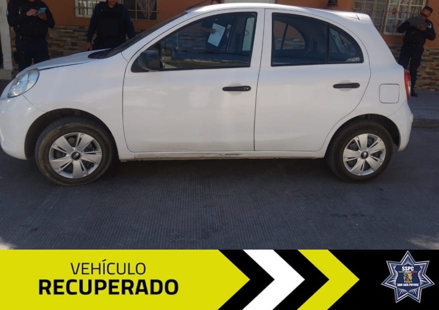 El segundo vehículo recuperado es un Nissan March color blanco, el cual fue reportado a través del C4 Municipal en calles de la colonia Simón Díaz. Los oficiales municipales acudieron a la calle Dominios de Canadá para verificar el reporte.