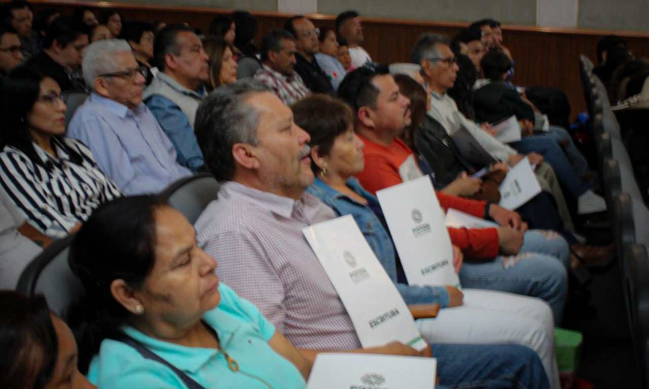 Con ese fin, recientemente se llevó a cabo la entrega de escrituras en beneficio de 55 familias de Bosques de las Flores y 53 más de la colonia Rincón de Maravillas.