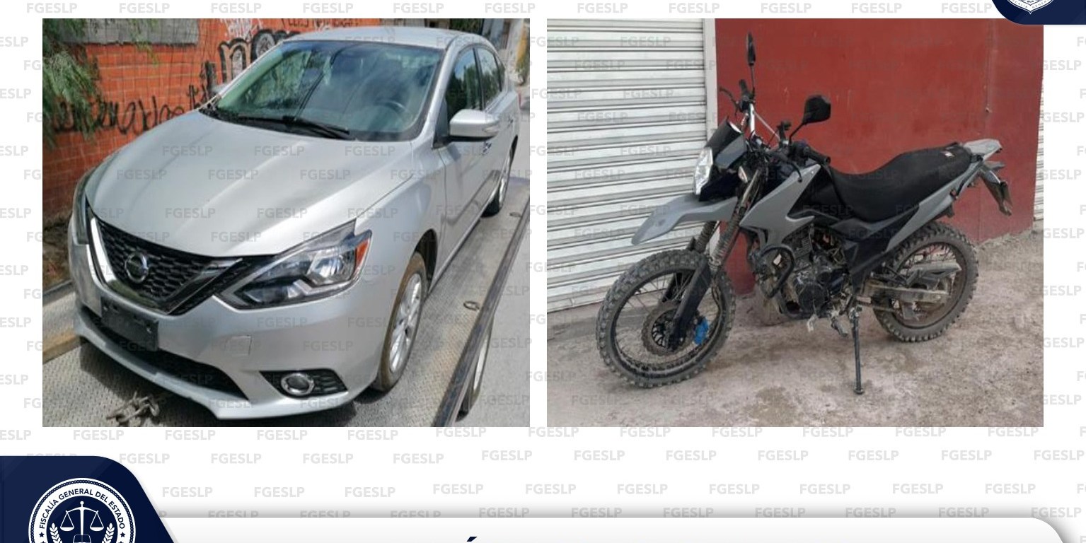 La Fiscalía General del Estado de San Luis Potosí (FGESLP) a través de la Policía de Investigación (PDI) efectuó el aseguramiento de un automóvil y una motocicleta en la Entidad potosina.