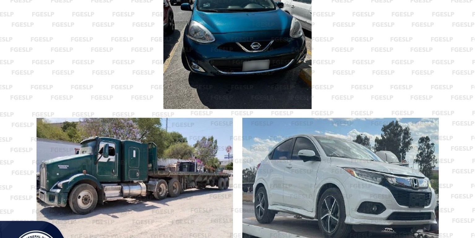La Unidad de Robo de Vehículos de la Dirección General de Métodos de Investigación (DGMI) recuperó un tráiler y dos automóviles con reporte de robo en la Capital potosina, informó la Fiscalía General del Estado de San Luis Potosí (FGESLP).
