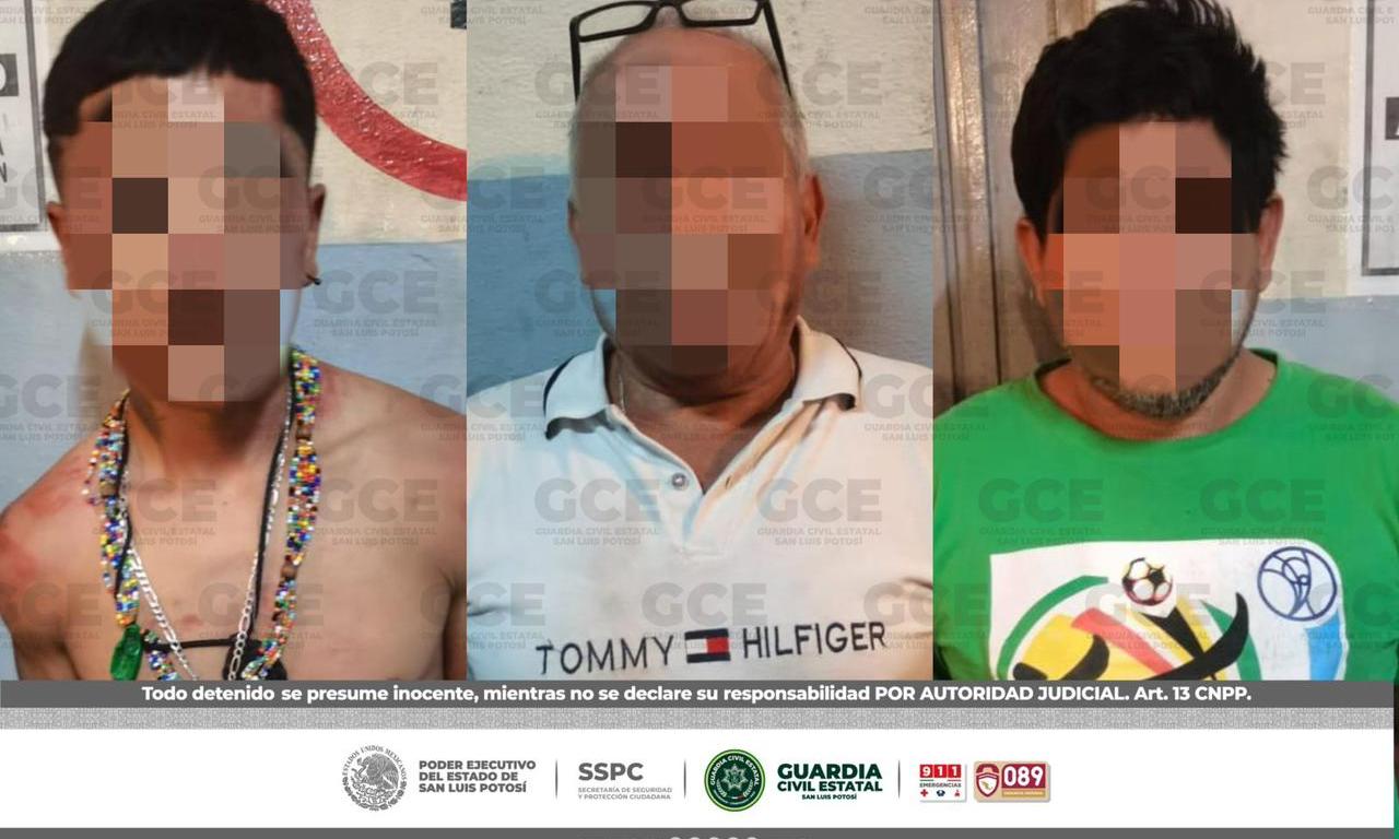 La Secretaría de Seguridad y Protección Ciudadana del Estado, informa que la tarde de este miércoles, fueron detenidos en la colonia Morales en la capital potosina tres masculinos por su presunta responsabilidad en delitos contra la salud en su modalidad de posesión de droga además de portación de arma de fuego.