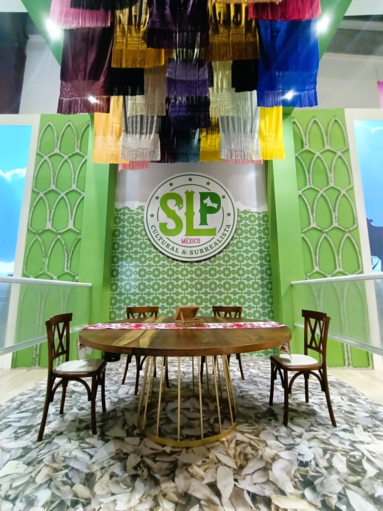 Para ello el Poder Ejecutivo del Estado, a través de la Secretaría de Turismo (Sectur) utilizó tecnología de vanguardia como un módulo basado en el concepto surrealista del “Castillo de Edward James” en Xilitla, pantallas gigantes con aplicaciones de inteligencia artificial que muestran la belleza de la Entidad.
