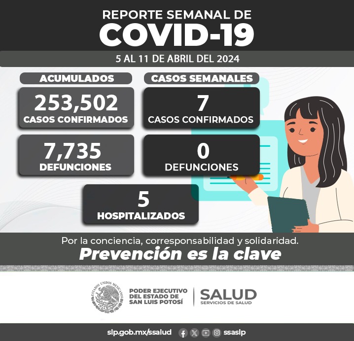 Del 5 al 11 de abril del 2024, se registraron siete nuevos casos y cero defunciones por Covid.