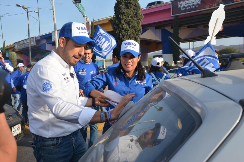 Al encabezar un volanteo en un crucero de esta ciudad, el líder del blanquiazul manifestó su respaldo al candidato a diputado federal, David Azuara, a Enrique Galindo, abanderado a la alcaldía de San Luis Potosí y a Verónica Rodríguez Hernández, quien va por el Senado de la República.