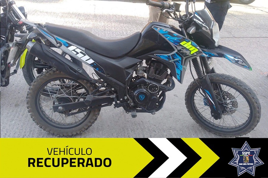 La segunda unidad localizada es una motocicleta Italika color azul con negro, misma que fue vista con dos personas a bordo sobre la avenida Juárez a la altura de la calle Patagonia de la colonia Santuario. Los agentes municipales se percataron que los tripulantes no portaban casco de seguridad, razón por la que se les marcó el alto para hacerles saber la falta cometida.
