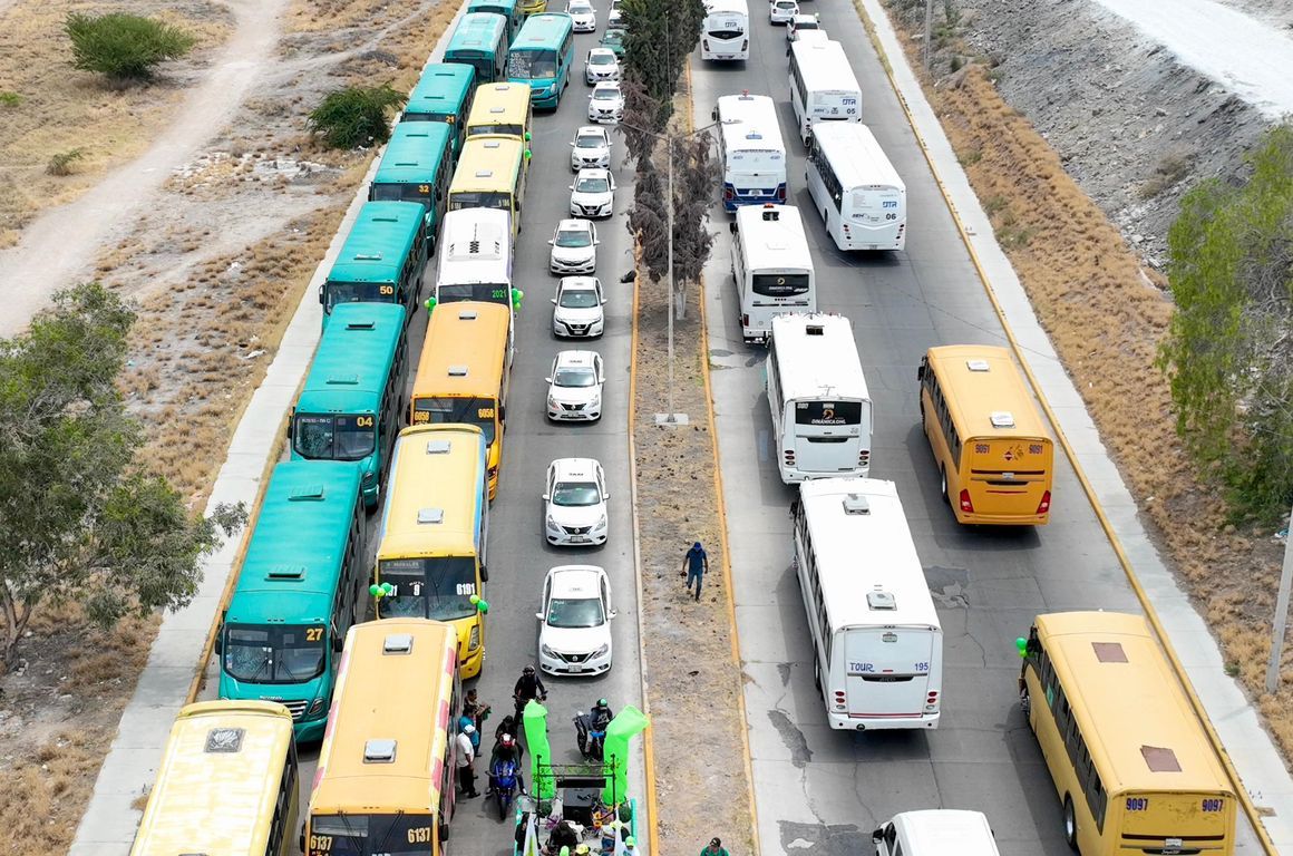 Cientos de mujeres y hombres dedicados al transporte público y privado de personal, agremiados a más de 60 organizaciones que este día sonaron el claxon en señal de apoyo a Ruth González, quien encabezaba la caravana desde una plataforma de grúa que la condujo del bulevar Españita a las instalaciones de la Fenapo, pasando por Salvador Nava y Avenida Juárez.