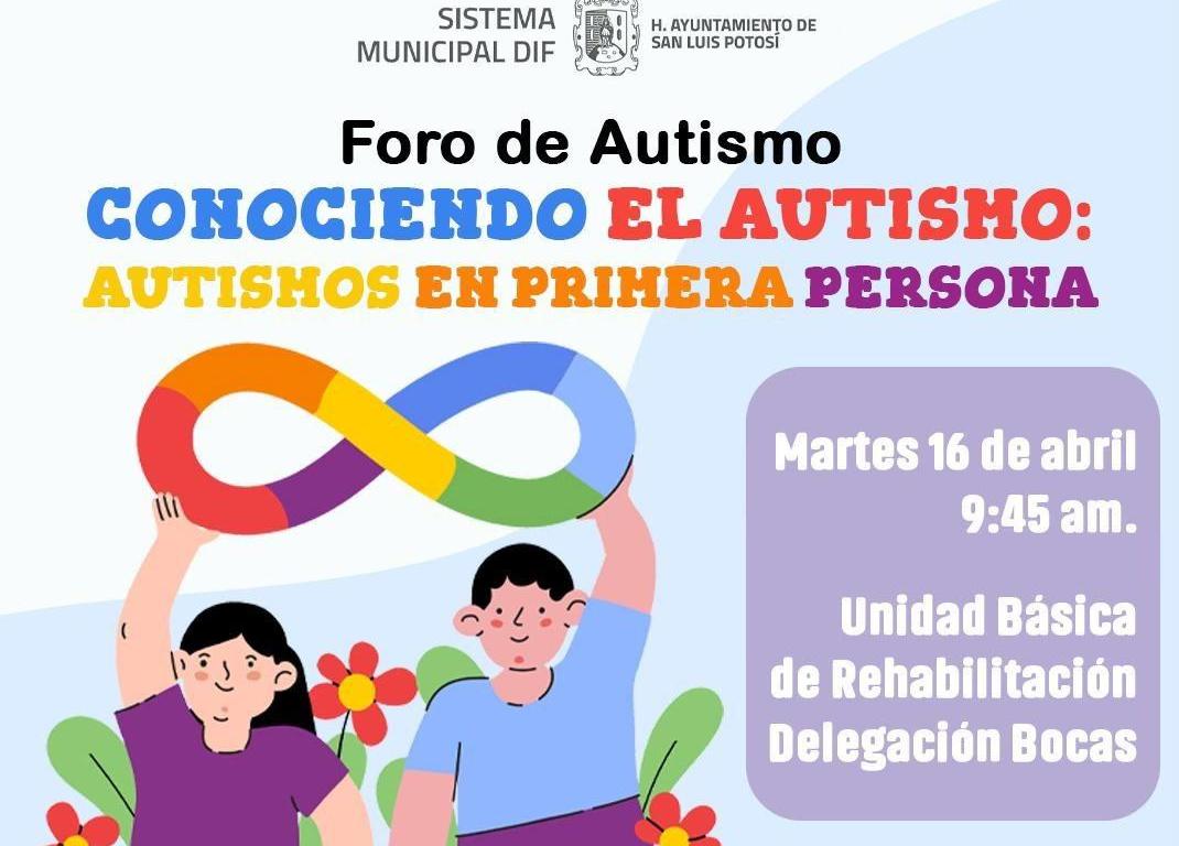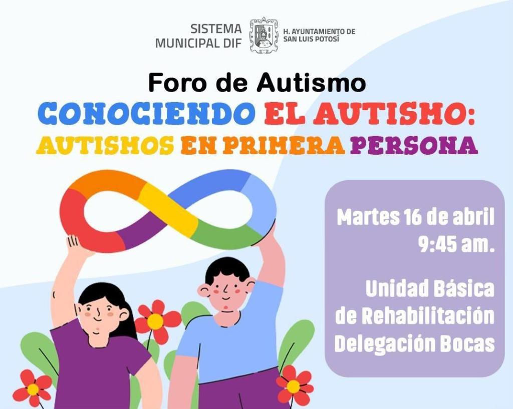 El Ayuntamiento de San Luis Potosí hace extensiva la invitación para que participes en el Foro Informativo y de Concientización sobre el Autismo que se llevará a cabo en la Unidad Básica de Rehabilitación (UBR), de la Delegación de Bocas, mañana martes 16 de abril, para lograr una sociedad más incluyente.