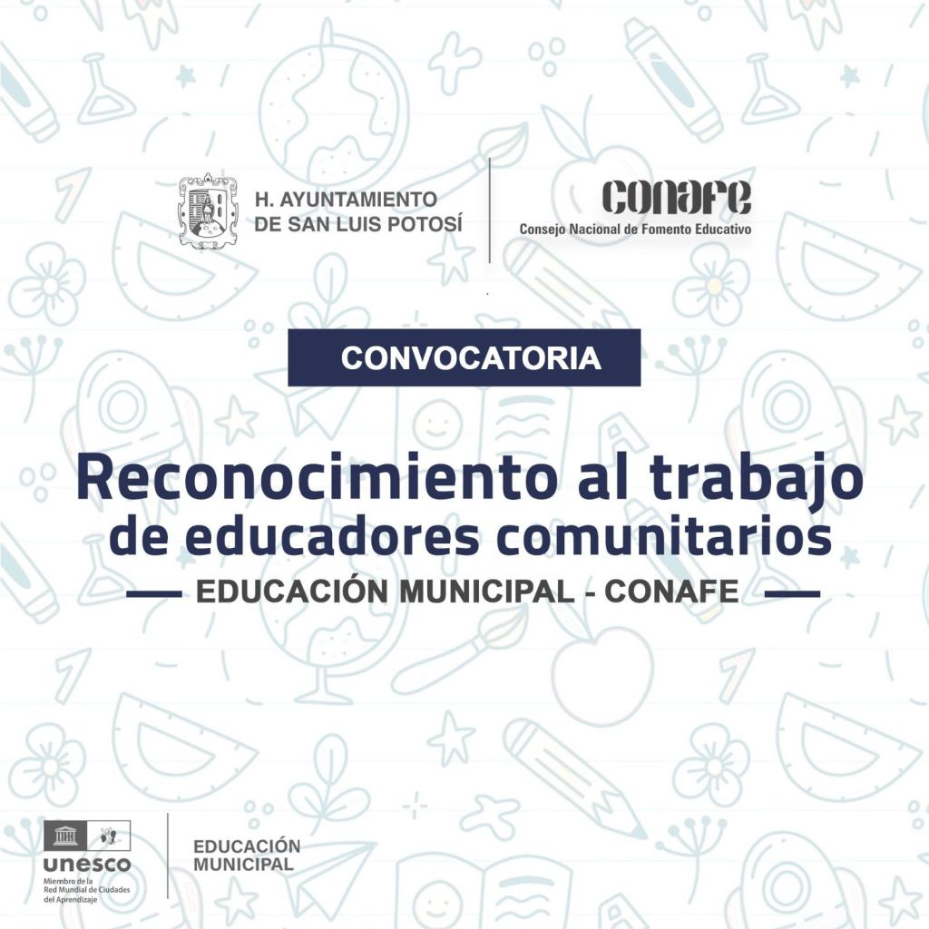 El Ayuntamiento de San Luis Potosí, a través de la Dirección de Educación Municipal y el Consejo Nacional de Fomento Educativo (Conafe), convocan a educadoras y educadores del referido Consejo que atienden localidades de esta Capital, a inscribirse al Premio Conafe ciclo escolar 2023-2024.