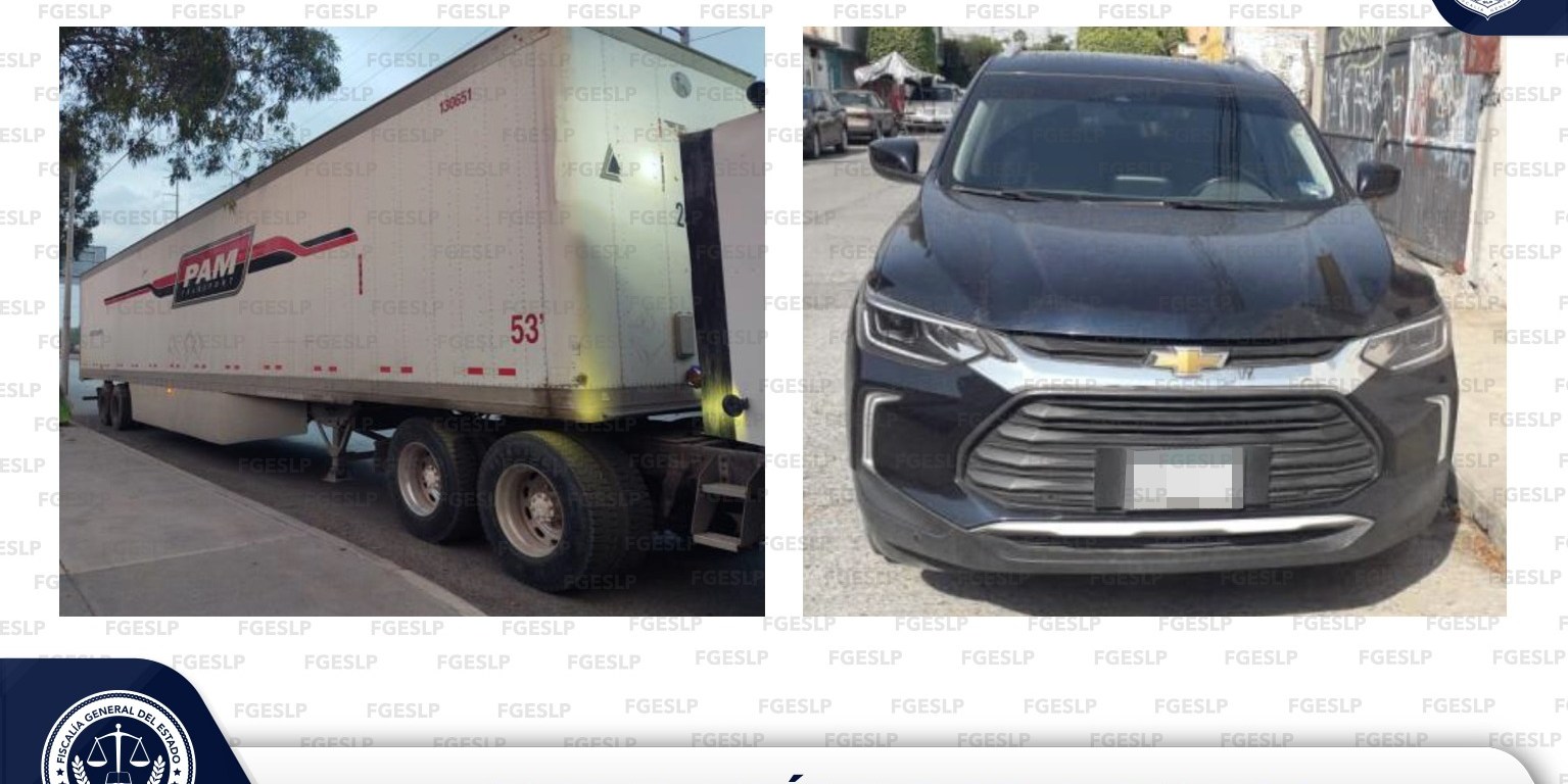 Dentro del trabajo desempeñado por la Dirección General de Métodos de Investigación (DGMI), la Fiscalía General del Estado de San Luis Potosí (FGESLP) dio a conocer el aseguramiento de un vehículo y una caja seca en la Zona Metropolitana.