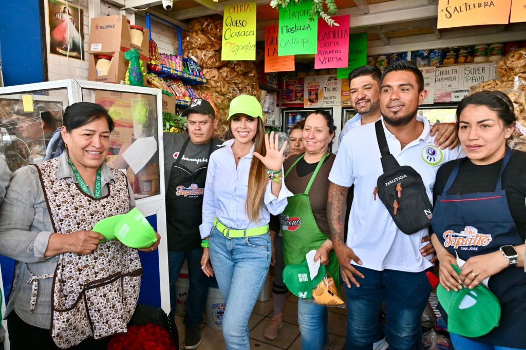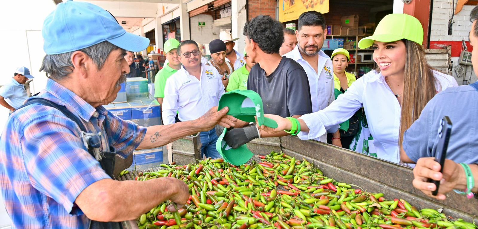 Hombres y mujeres trabajadores en las diferentes áreas de la Central de Abastos se acercaron a Ruth González, le expresaron el apoyo para que se convierta en la próxima senadora por San Luis Potosí, además de agradecerle las acciones emprendidas a su paso por el DIF Estatal, por su parte la candidata ecologista se comprometió a gestionar recursos para que el Gobierno del cambio lleve apoyos sociales a todas las familias de los cargadores, las cajeras, personal de vigilancia, vendedores de frutas y verduras, legumbres, alimento para mascotas, para animales de granja, dulcerías, artículos de fiesta y la gran variedad de mercancía que se comercia en el lugar.