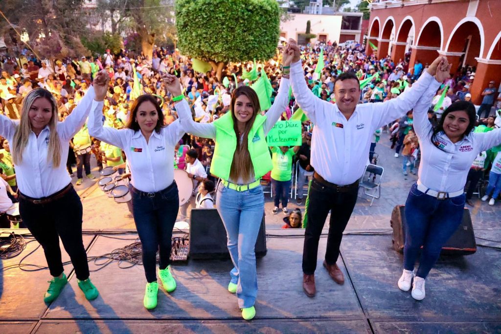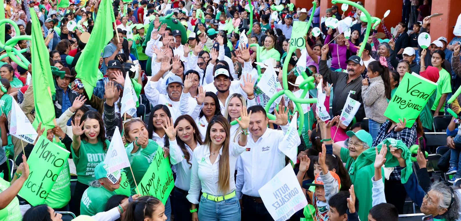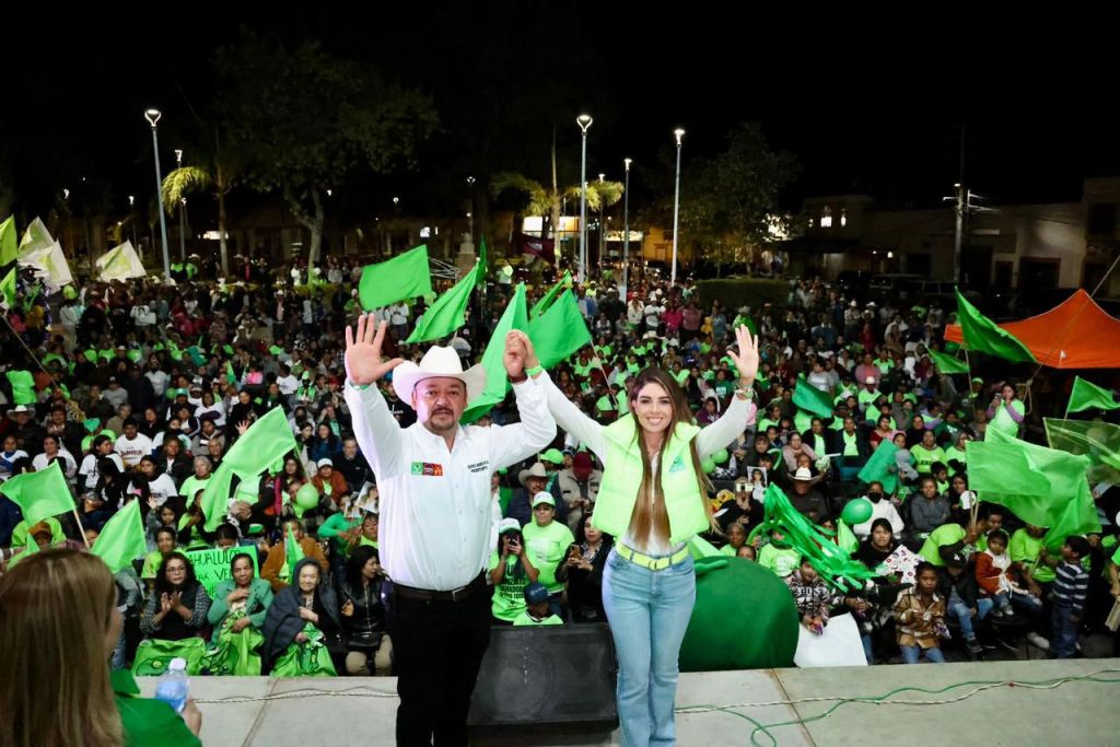 En un multitudinario recibimiento a Ruth González, Moctezuma se pintó de Verde y se inundó con porras y aplausos para la candidata que anunció que desde el Senado, “garantizaré el presupuesto para que el Gobierno del Cambio incremente los apoyos sociales a madres solteras y adultos mayores que actualmente reciben 3 mil pesos y a partir del próximo año subirá a 6 mil, beneficio directo para miles de familias potosinas”.
