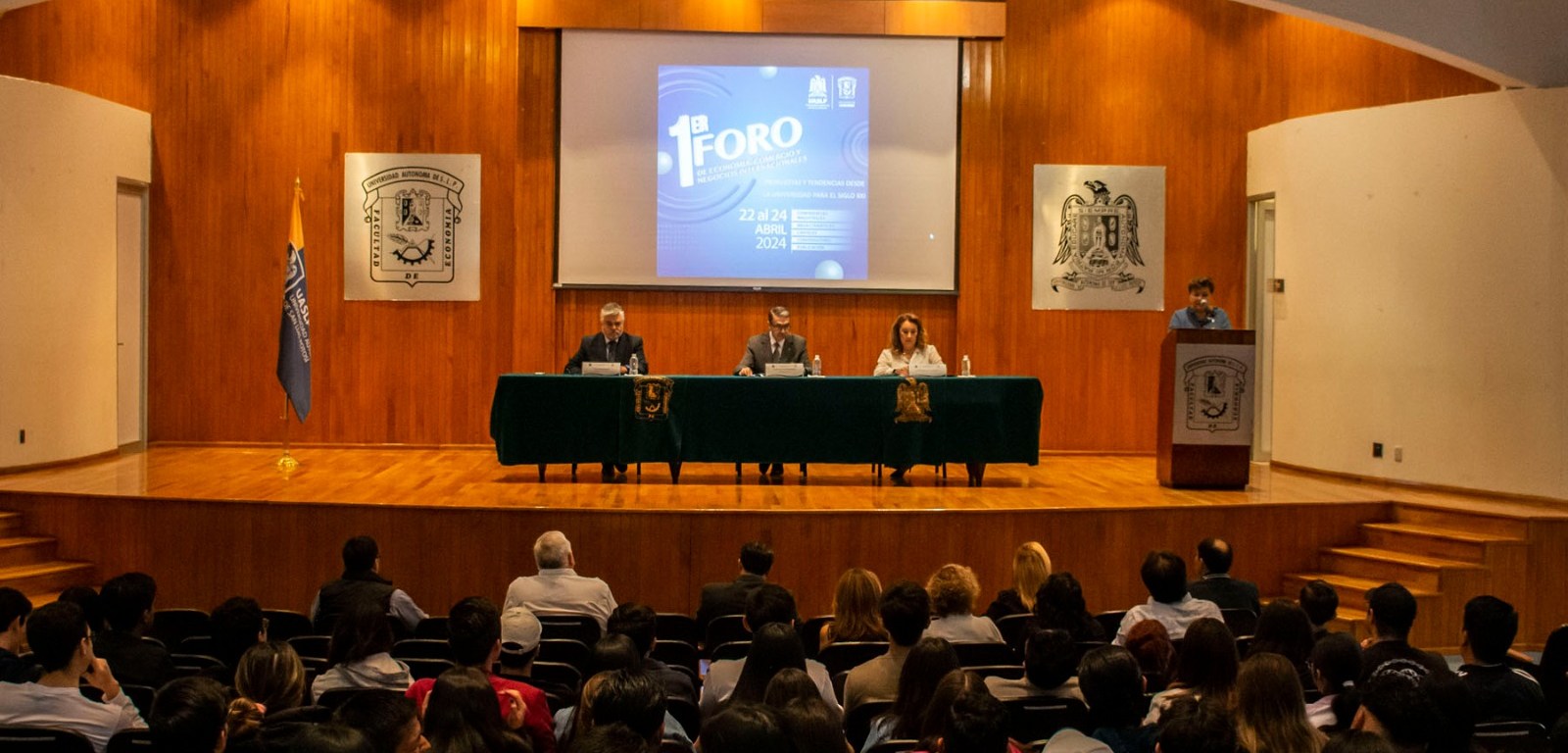 La Universidad Autónoma de San Luis Potosí (UASLP) a través de la Facultad de Economía avanza hacia la innovación y promueve la reflexión con la realización del Primer Foro de Economía, Comercio y Negocios Internacionales, evento que se lleva a cabo del 22 al 24 de abril.
