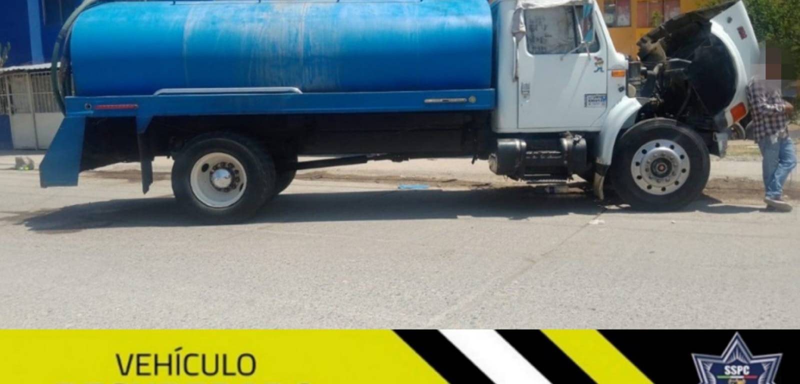 En otra acción operativa en la colonia Arbolitos, agentes de Guardia Municipal detectaron una pipa de agua obstruyendo la vialidad, por lo que se entrevistaron con el conductor quien mostró una actitud evasiva al cuestionarle sobre los documentos que acreditaran la propiedad del vehículo.