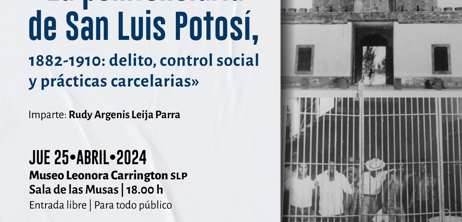El Poder Ejecutivo del Estado a través del Archivo Histórico de San Luis Potosí “Lic. Antonio Rocha”, invita a las y los potosinos a acudir a la conferencia gratuita “La Penitenciaría de San Luis Potosí, 1882-1910: delito, control social y prácticas carcelarias”, el 25 de abril, a las 18:00 horas, en la Sala de las Musas del Museo Leonora Carrington, con acceso libre.