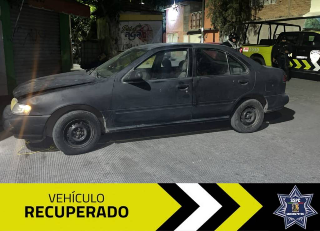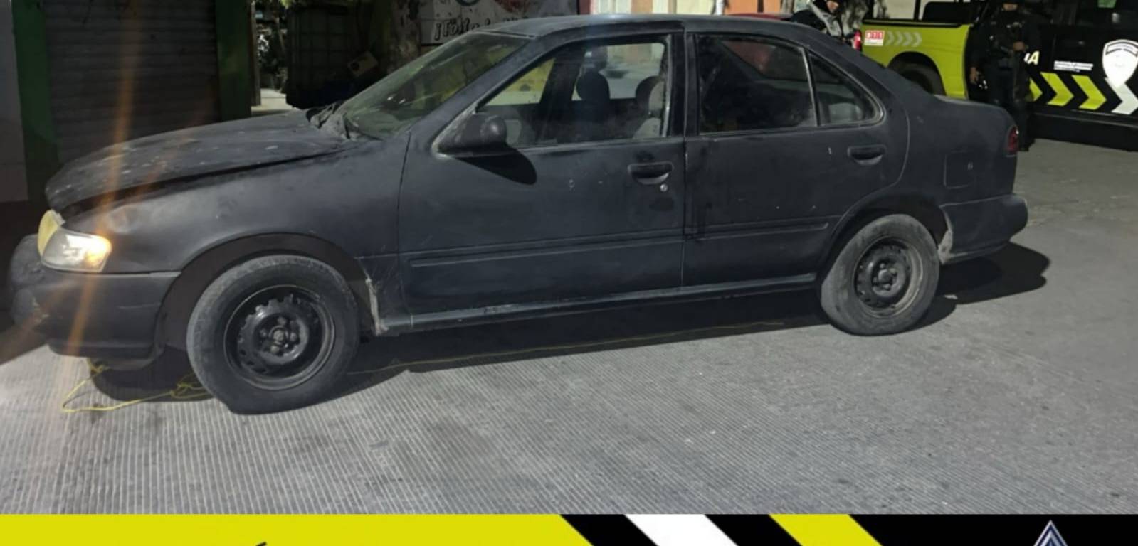 El segundo vehículo recuperado es un sedán marca Nissan Sentra color gris, el cual fue visto en patrullajes de vigilancia sobre la Colonia Progreso, los agentes municipales tuvieron contacto visual con la unidad sobre la avenida Curie, se encontró con el cofre entreabierto y huellas de desvalijamiento al interior.