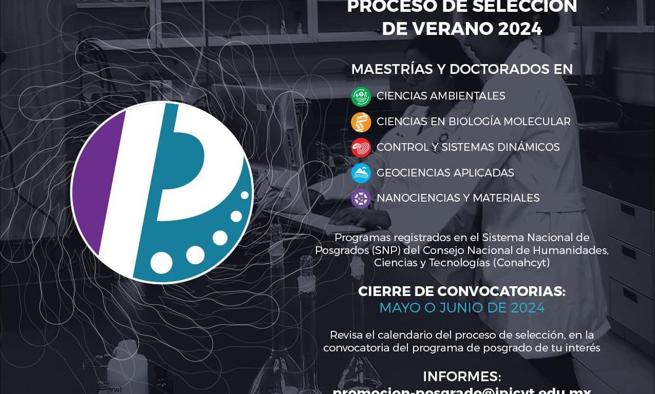 El Poder Ejecutivo del Estado, a través del Consejo Potosino de Ciencia y Tecnología (Copocyt), invita a las y los potosinos egresados de licenciatura o maestría a estudiar uno de los diez posgrados que ofrece el Instituto Potosino de Investigación Científica y Tecnológica, AC (Ipicyt), en áreas de ciencias exactas y naturales.