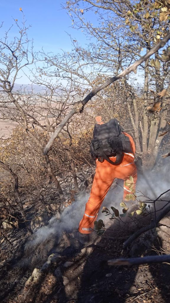El personal operativo trabajó en el combate a un nuevo incendio forestal registrado el domingo 28 de abril en la sierra de San Miguelito.