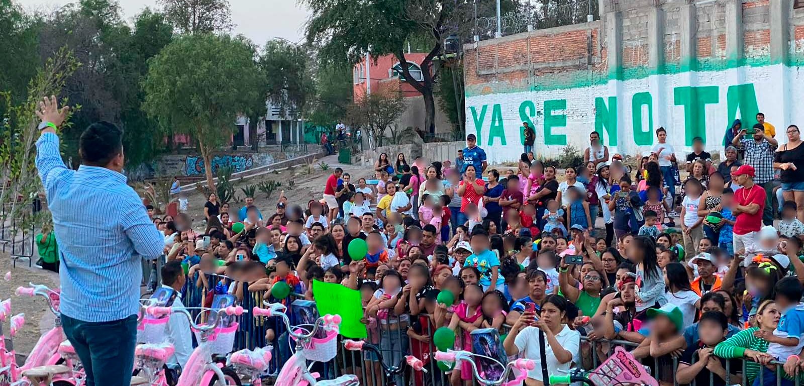 Las y los niños de las colonias General I. Martinez y La Matamoros, recibieron juguetes, balones y bicicletas, partieron pastel y disfrutaron de espectáculos infantiles, dulces y comida que prepararon los colonos.