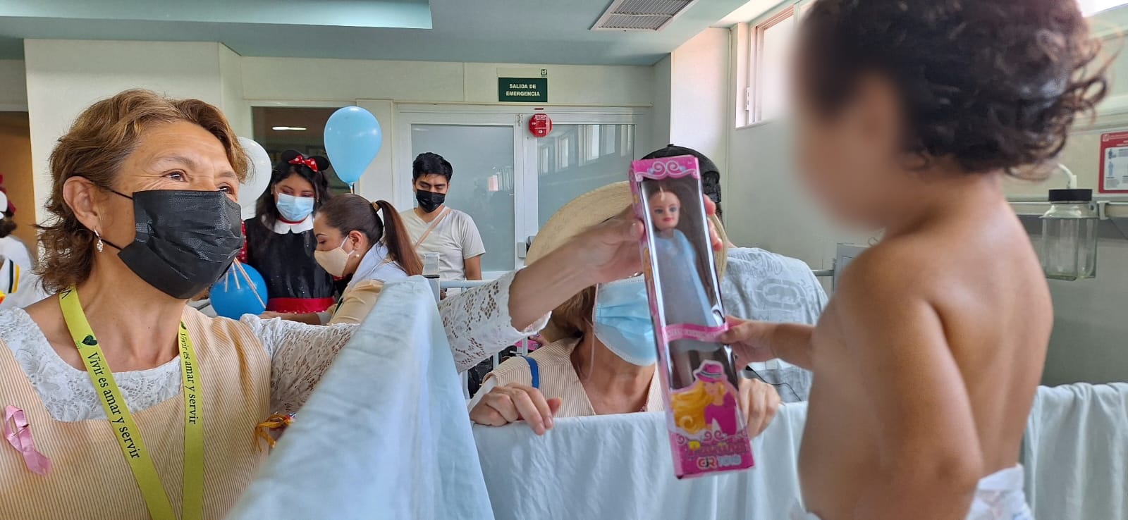 Las personas voluntarias realizaron un recorrido por las diversas áreas pediátricas y salas de espera de Medicina Familiar y especialidades, así como en el área de Hospitalización, para entregar a las niñas y niños, para obsequiar juguetes.