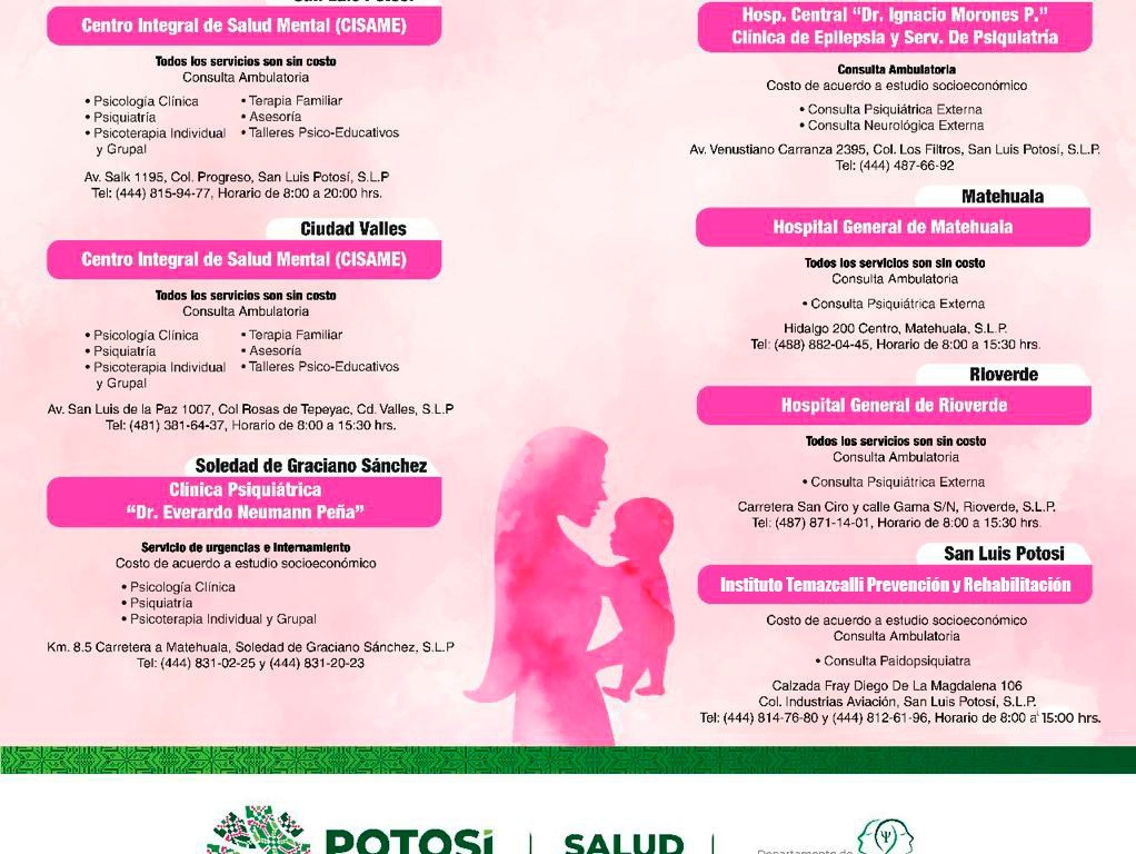 De acuerdo con datos del Instituto Nacional de Psiquiatría Ramón de la Fuente Muñiz, en México la depresión en el embarazo se estima entre 9 y 14 por ciento, mientras que la depresión posparto va del 6.6 a 24.6 por ciento, por lo que es importante identificar señales de alarma en las mujeres, tales como: retraimiento de la pareja o la incapacidad de vincularse con el bebé, tener cambios de humor repentinos, incapacidad para concentrarse; aumento de los niveles de ansiedad que pueden impedir los patrones normales de sueño y alimentación tanto para la madre como para la niña o el niño; tener sentimientos de culpa abrumadora, miedo o tristeza.