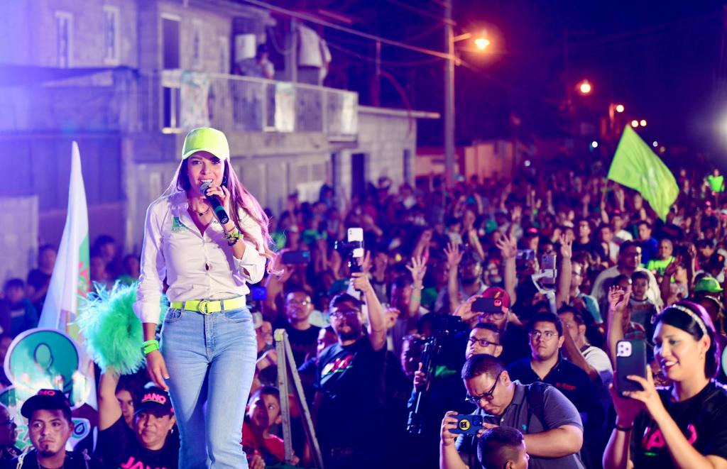 En medio de banderas verdes, porras, pancartas y aplausos, Ruth González dijo que las madres solteras y adultos mayores ahora recibirán 6 mil pesos y que se apoyará al Gobierno del cambio para que aumente los beneficiarios de becas alimenticias y se crean las nuevas becas económicas para todos los pequeños de primaria.