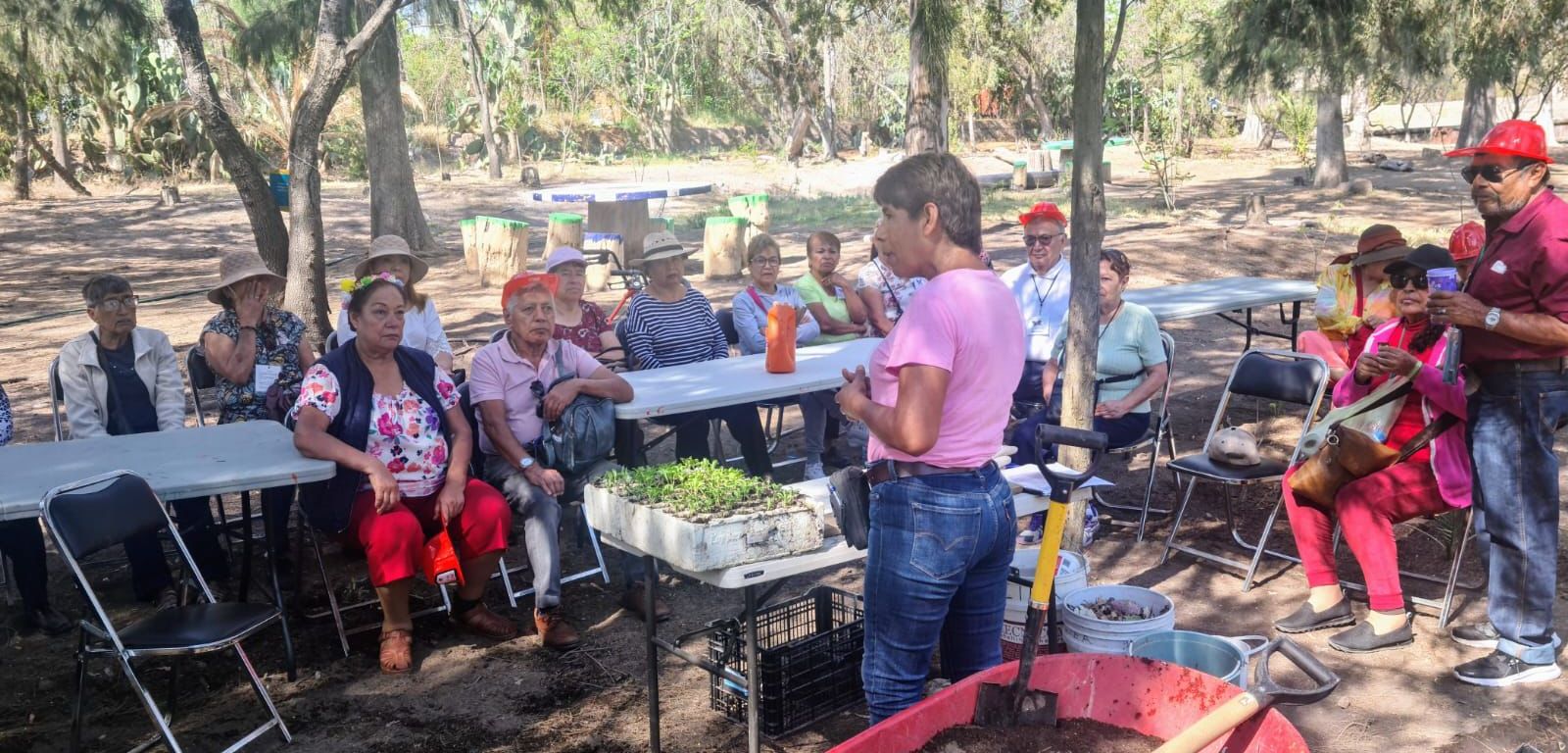 Personal de la Dirección de Gestión Ecológica y Manejo de Residuos instruyeron a adultas y adultos mayores en la plantación de vegetación acorde con el suelo y el clima del Municipio, y los involucró en actividades de reforestación.