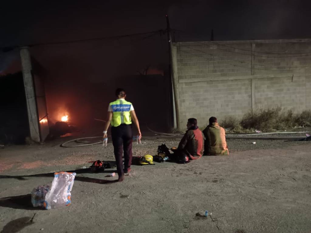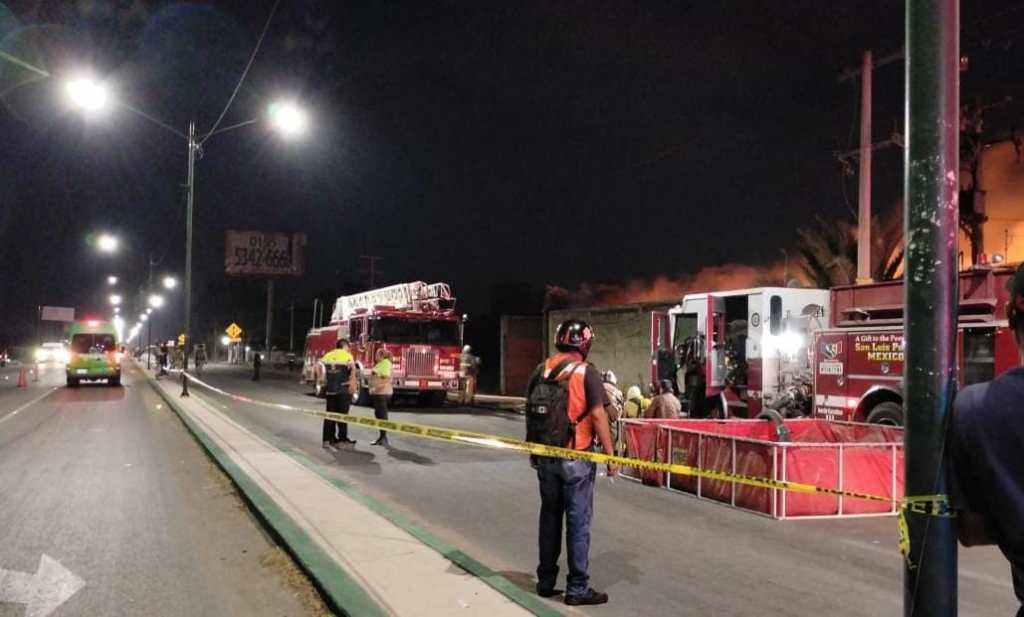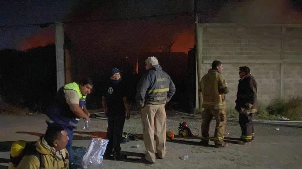 Esta noche, personal de Seguridad Pública y Protección Civil Municipal de Soledad de Graciano Sánchez, colaboran con Cuerpo de Bomberos y Protección Civil Estatal en el combate del incendio al interior de las instalaciones de una empresa de recubrimientos plásticos, ubicada en Camino al Aeropuerto a unos 200 metros del paso ferroviario.