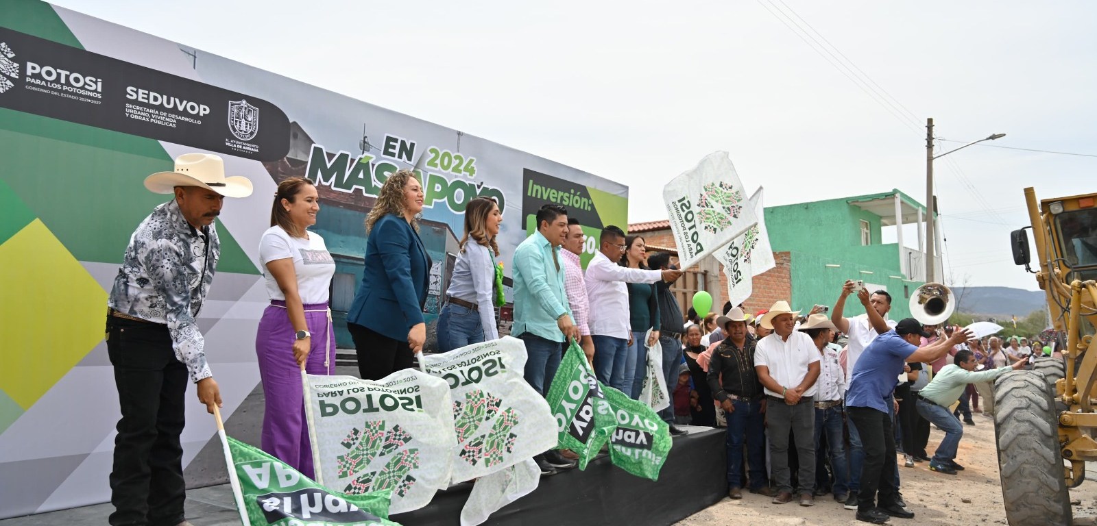 Rodeado de familias agradecidas por el inicio de esta obra que les permitirá acortar tiempos de traslado a centros de salud, escuelas, de trabajo, otras localidades y que además mejorará la imagen de su comunidad, el Mandatario Estatal indicó que esta calle se unirá a la nueva carretera que se está construyendo de Villa de Reyes a Villa de Arriaga, lo que cambiará la vida a la población, porque podrá acceder a empleos de calidad y bien pagados en todas las empresas armadoras y las que están por llegar a San Luis Potosí.