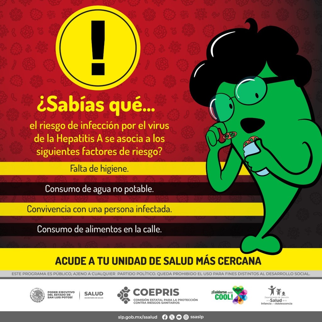 La hepatitis A es una enfermedad infecciosa del hígado causada por el virus de la hepatitis A (VHA), se transmite principalmente a través del consumo de agua o alimentos contaminados, o por contacto directo con una persona infectada; es un padecimiento que puede variar en severidad, desde una leve que dura pocas semanas hasta una forma más grave que puede ser por meses y si no se atiende a tiempo, incluso puede ocasionar la muerte.