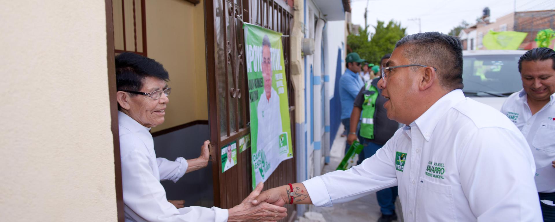 En recorrido por las colonias San Andrés y Las Higueras, Juan Manuel Navarro Muñiz candidato del Partido Verde a la Presidencia Municipal, se comprometió con las familias a consolidar el sistema de seguridad municipal, con el aumento de la fuerza policial a través de la academia municipal, la incorporación de jóvenes y la designación de mandos policiacos soledenses.