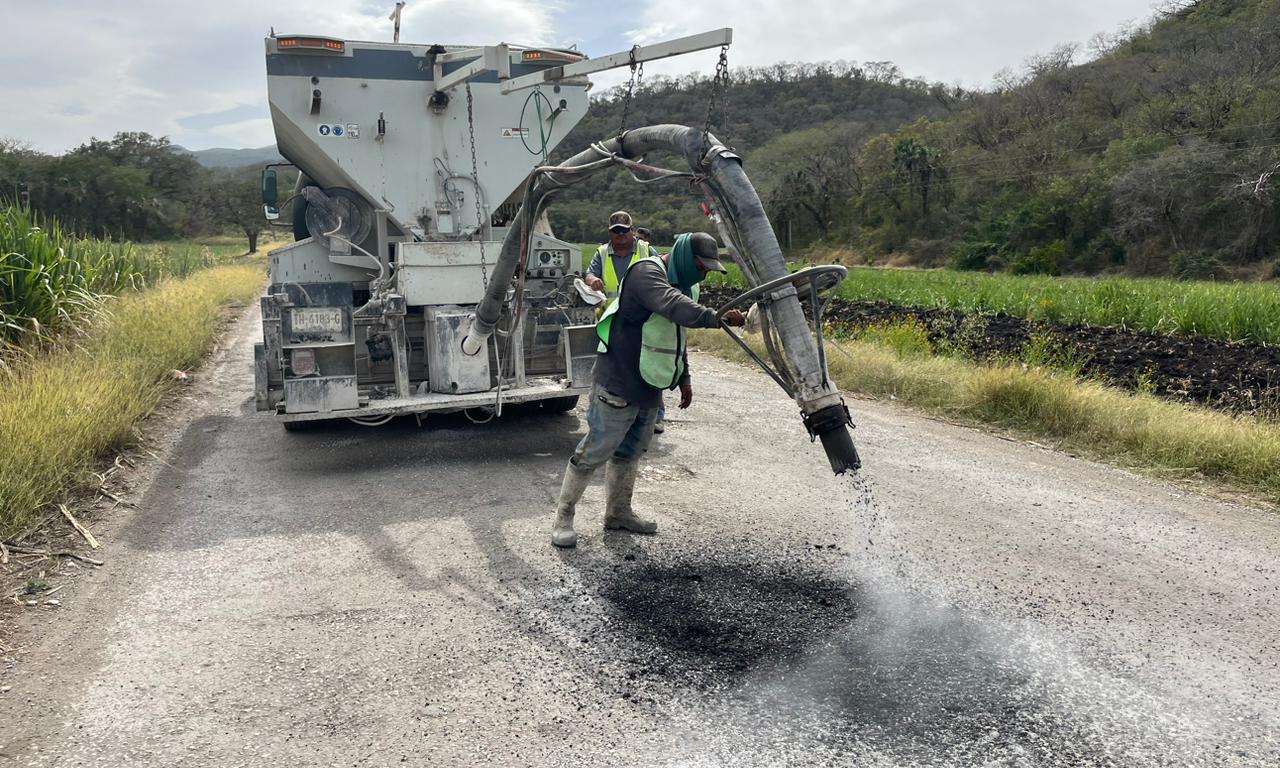 La Junta Estatal de Caminos ejecuta acciones de bacheo superficial en tramos aislados del acceso a Minas Viejas en una longitud de tres kilómetros.