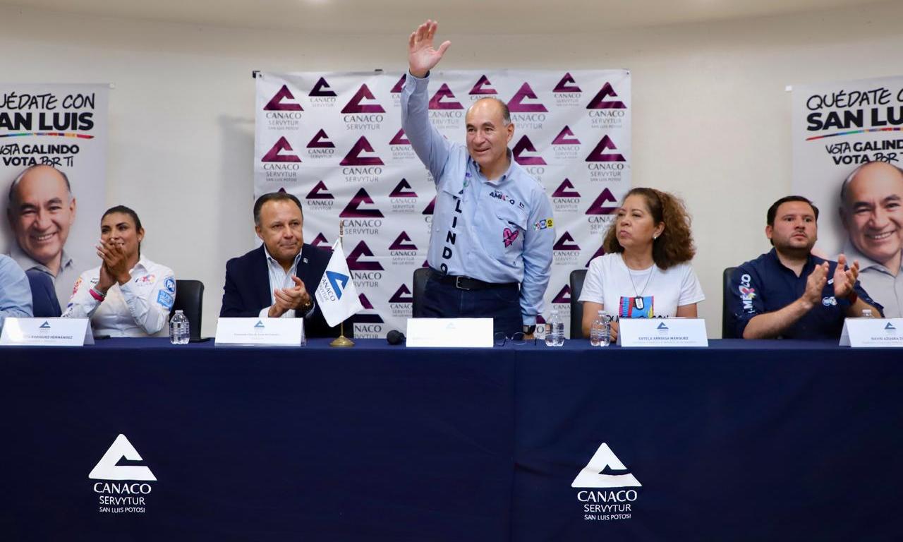 En reunión con empresarios afiliados a la Cámara Nacional de Comercio (Canaco), el candidato de la coalición Fuerza y Corazón por San Luis a la presidencia municipal, Enrique Galindo Ceballos, señaló que durante la siguiente administración municipal se realizará una inversión de entre 4 y 5 mil millones de pesos para infraestructura vial, con lo que se destrabarán 12 nudos viales que mejorarán la movilidad en la capital. Dio a conocer que en la administración municipal que encabezó se regeneraron de manera integral 168 calles y avenidas en toda la ciudad.