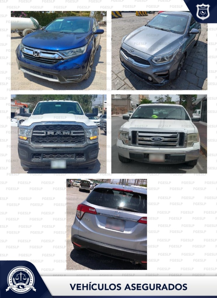 Dentro del trabajo desempeñado por la Unidad de Robo de Vehículos, la Fiscalía General de Estado de San Luis Potosí (FGESLP) dio a conocer el aseguramiento de cinco vehículos en la Capital potosina.