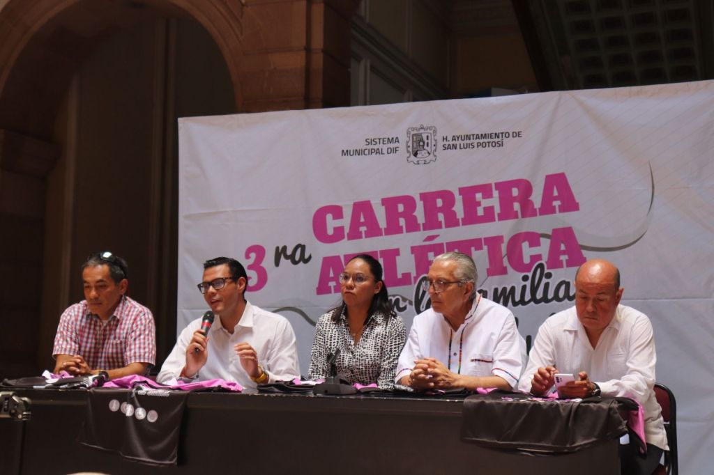 El Ayuntamiento de San Luis Potosí, a través del Sistema Municipal DIF, y las direcciones de Cultura y Deportes, invitan a participar en la 3era. Carrera Atlética por la Familia y la Salud, que se llevará a cabo el domingo 26 de mayo con salida y meta en el Jardín de Tequis.