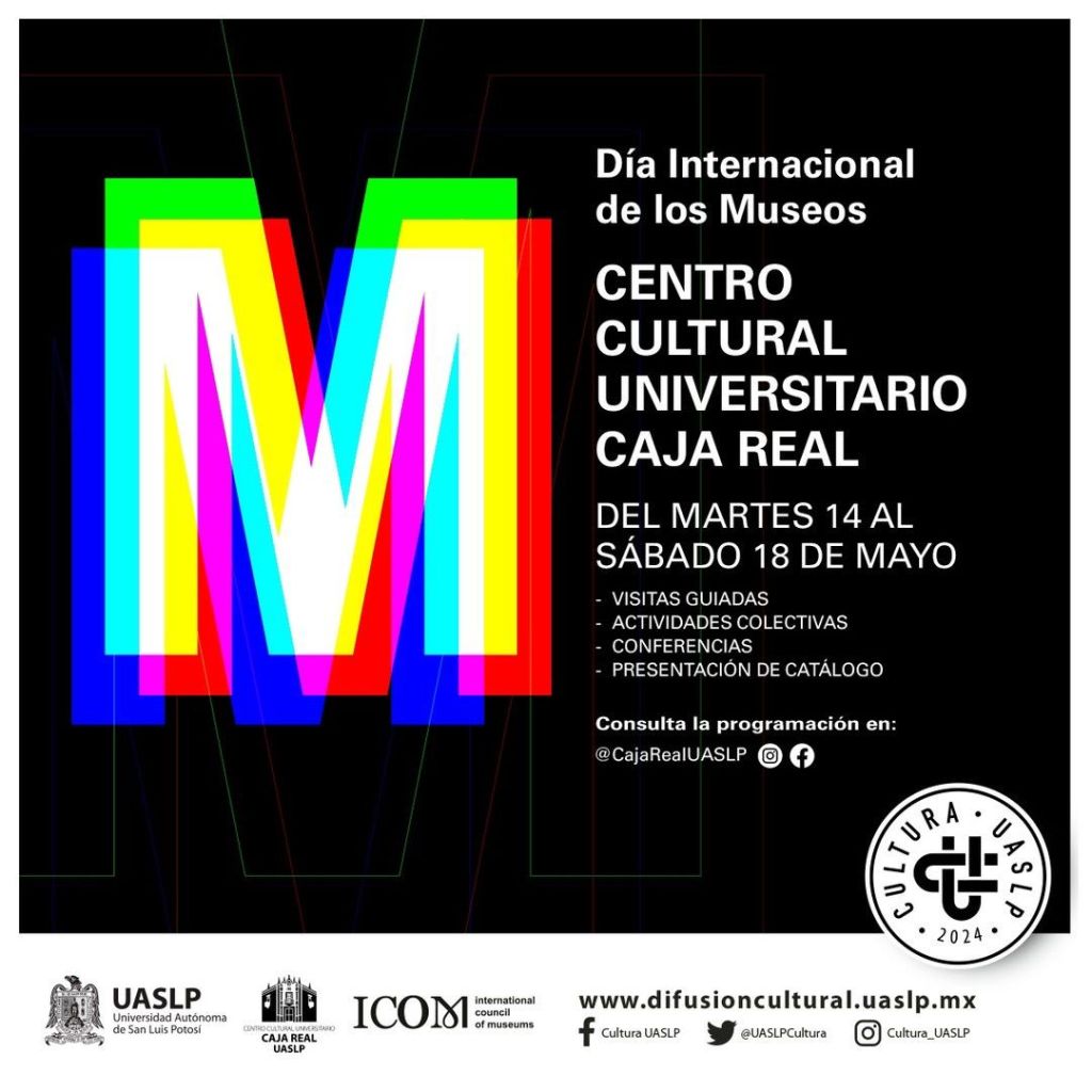 Para esto la Secretaría de Difusión Cultural UASLP proyecta vistas guiadas, actividades colectivas, conferencias y presentación de catálogos, todas actividades que se realizarán en el Centro Cultural Caja Real, y que arrancarán a partir del 14 de mayo y tendrán duración hasta el día internacional oficial estesábado 18 de mayo. La sede serán las instalaciones ubicadas en la esquina de las calles de Madero y Aldama en el primer cuadro de la capital de San Luis Potosí.