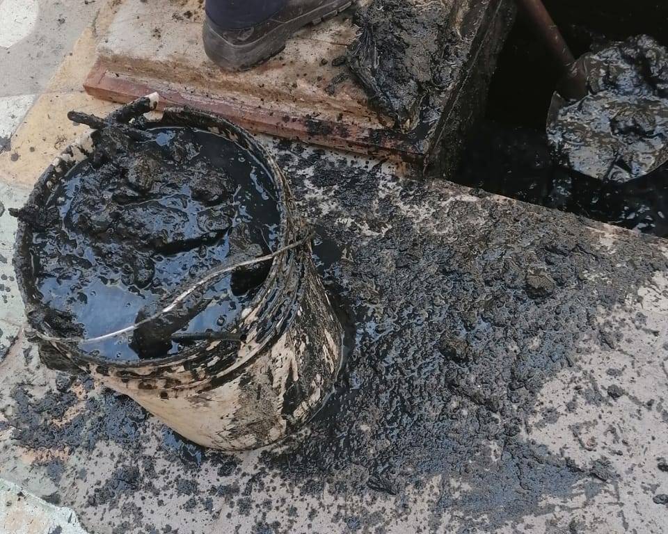 Se encontraron formaciones con la dureza de una piedra, que se producen cuando la grasa tiene contacto con otros productos como detergentes.