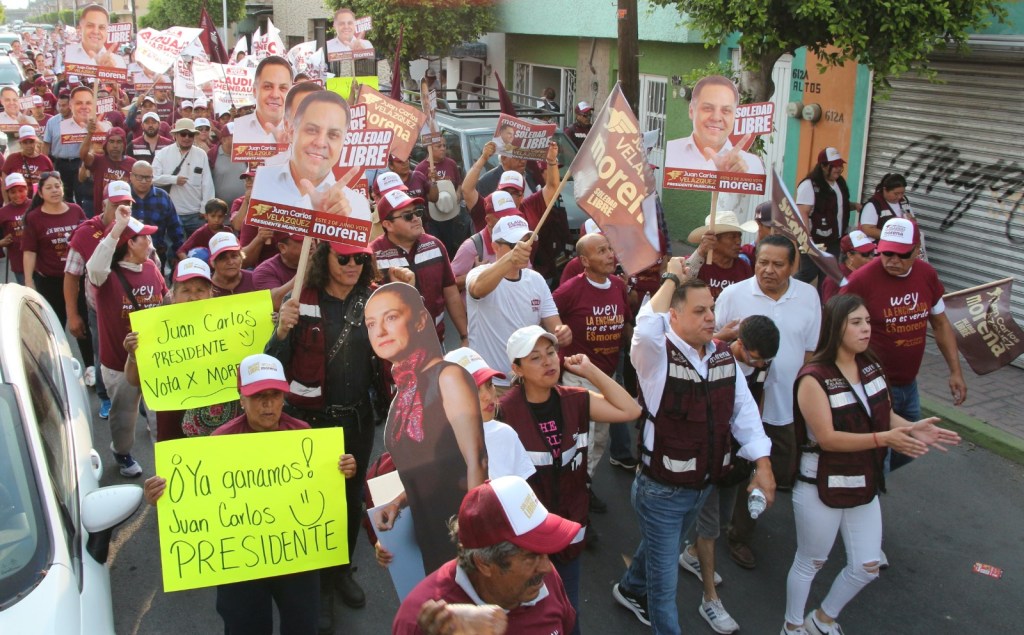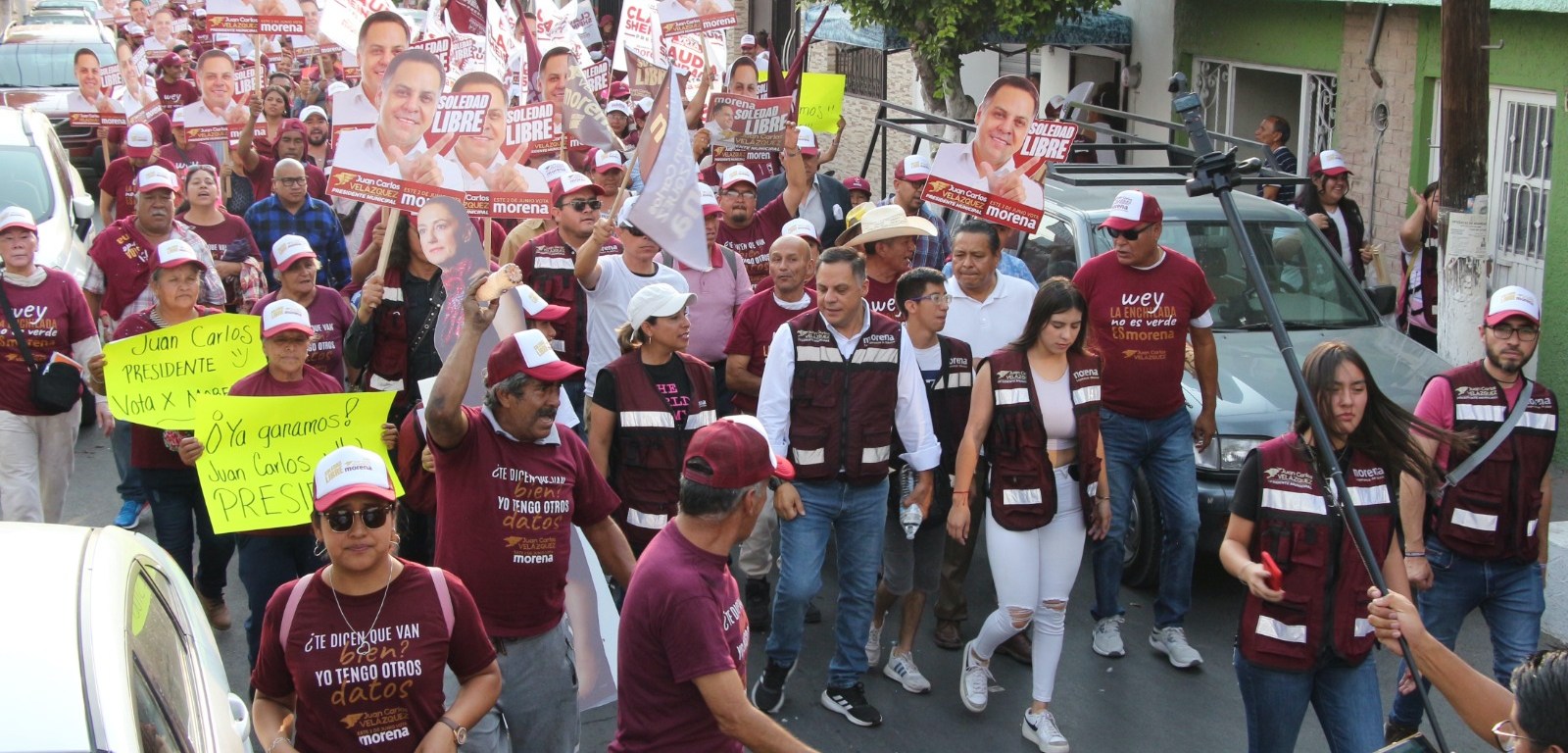 Numeroso contingente de alrededor de mil 500 ciudadanos de colonias y comunidades del municipio se volcó este domingo en favor del candidato de Morena a la presidencia municipal, Juan Carlos Velázquez Pérez en la Caminata por la Libertad de Soledad de Graciano Sánchez