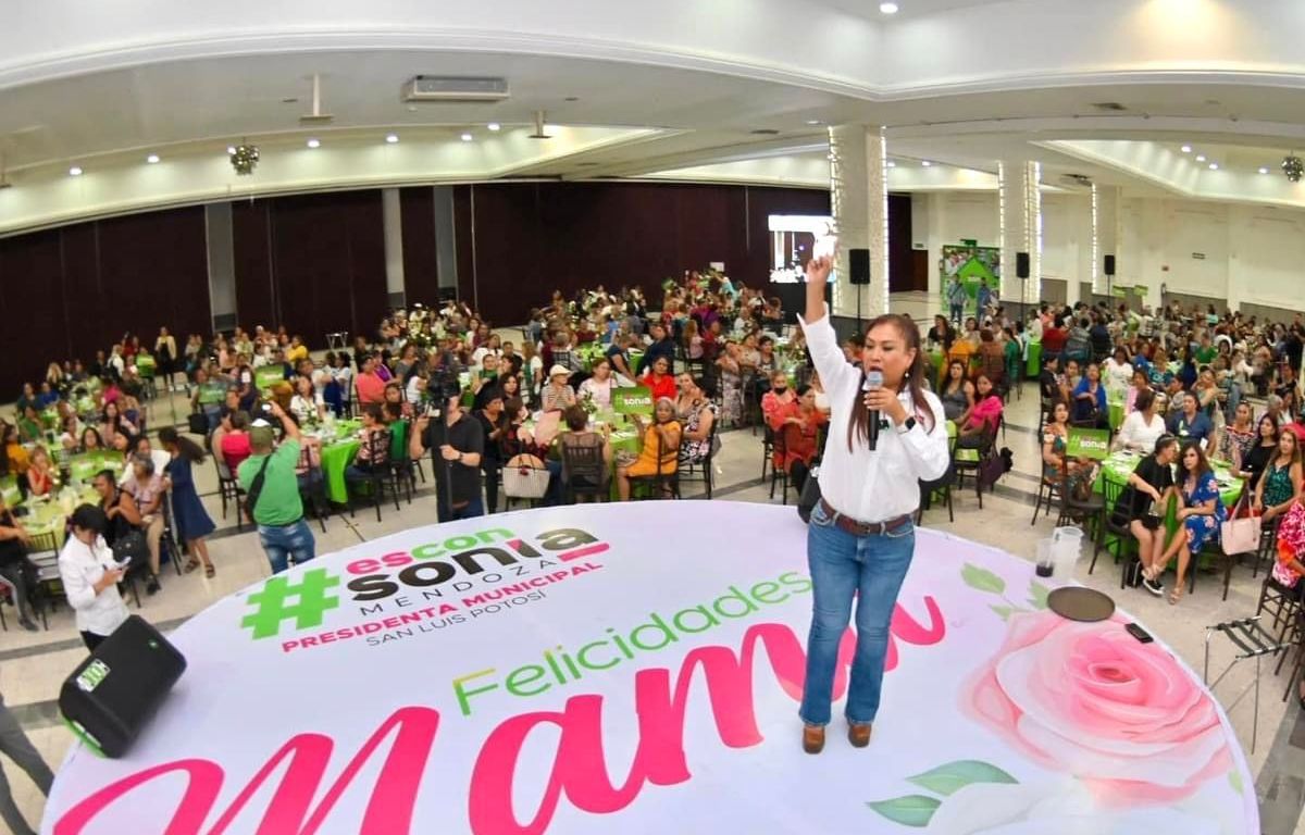 Sonia Mendoza habló claro y de frente: “las mujeres suelen ser los hombros sobre los que se edifica no solo la familia sino la sociedad, por eso hoy somos mujeres apoyando a mujeres y entendemos que debemos practicar la sororidad, para lograr avanzar nosotras mismas, y para que nuestras familias tengan mejores condiciones de vida en nuestra casa que es San Luis Potosí.”